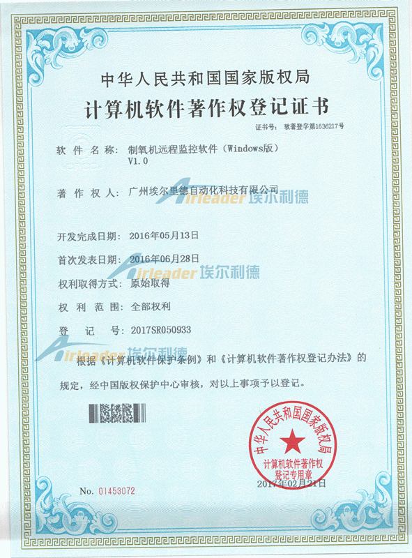 软件名称:制氧机远程监控软件(windows版)V1.0